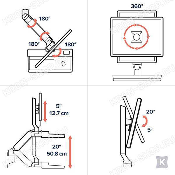 Степени свободы Ergotron CareFit Combo Arm Keyboard & Monitor Mount (45-621-251):