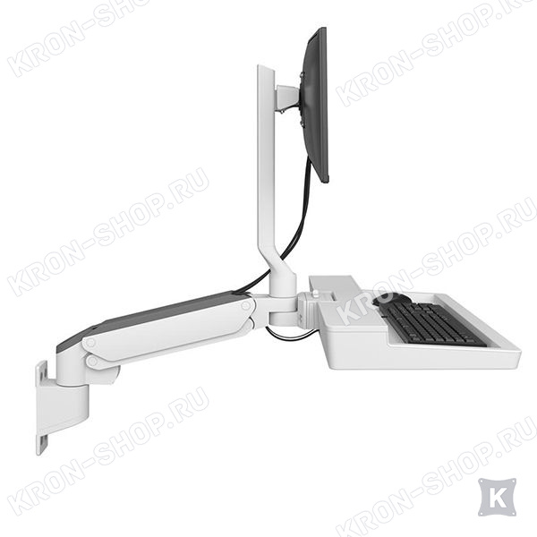 Настенный поворотно-наклонный кронштейн в белом цвете для монитора и клавиатуры.