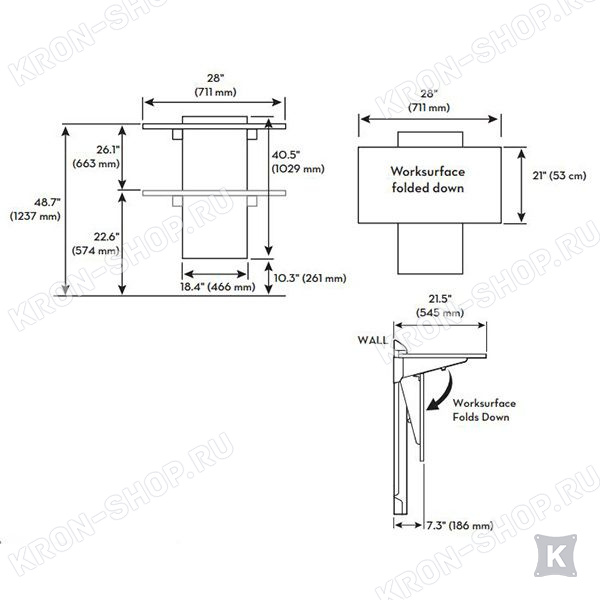 - полку можно сложить, общая глубина системы составит всего 186 мм;