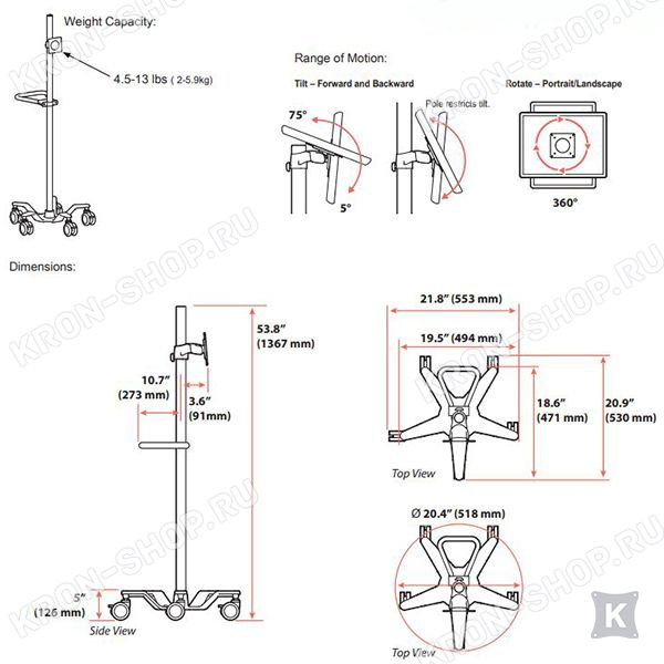 Степени свободы Ergotron StyleView Pole Cart (24-818-211):