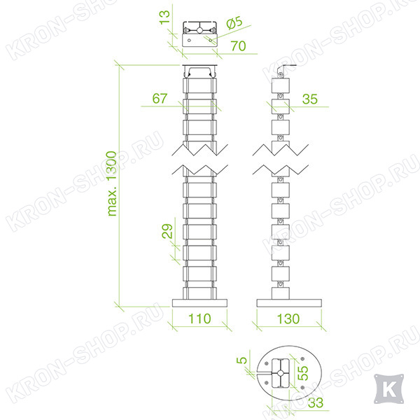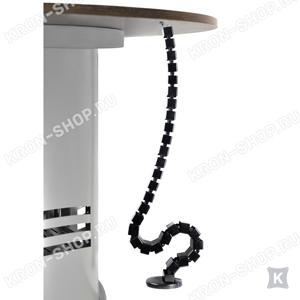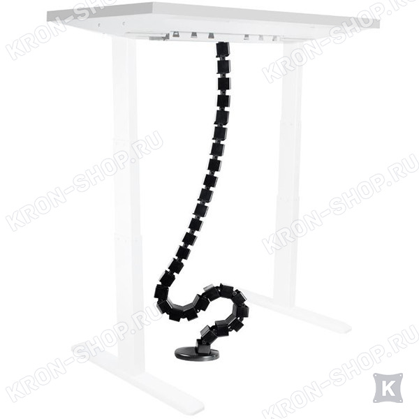 Гибкий пластиковый кабель-канал ErgoFount CS-13B для стола с фиксацией к столешнице. Конструкция состоит из 19 блоков. Материал: АБС-пластик с металлическим основанием. Длина: 1300 мм. Диаметр: 67 мм. Цвет – черный.