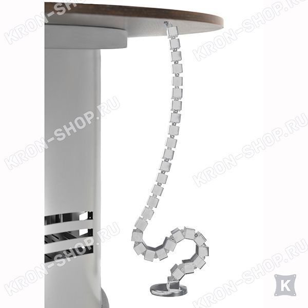 Гибкий пластиковый кабель-канал ErgoFount CS-13S для стола с фиксацией к столешнице. Конструкция состоит из 19 блоков. Материал: АБС-пластик с металлическим основанием. Длина: 1300 мм. Диаметр: 67 мм. Цвет – серебристый.