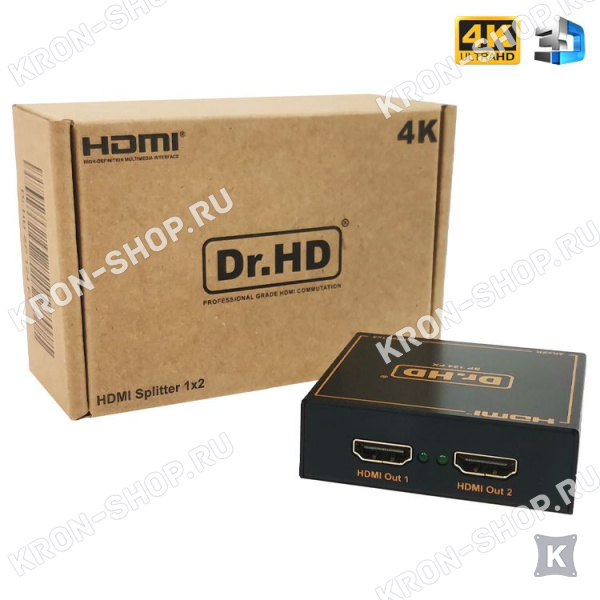 HDMI сплиттер 1х2 Dr.HD SP 124 FX с поддержкой Blu-Ray 3D и 4K разрешения.