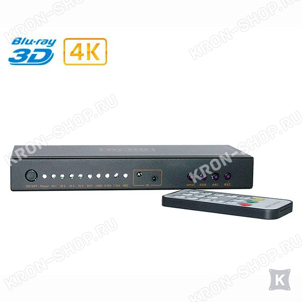 HDMI переключатель 4х1 Dr.HD SW 414 SLA поддерживает передачу разрешения 4K и сигнал 3D, имеются разъемы SPDIF и Audio 3.5 мм..