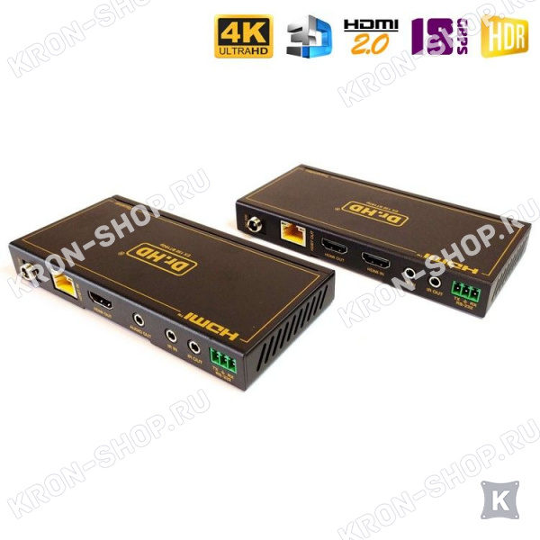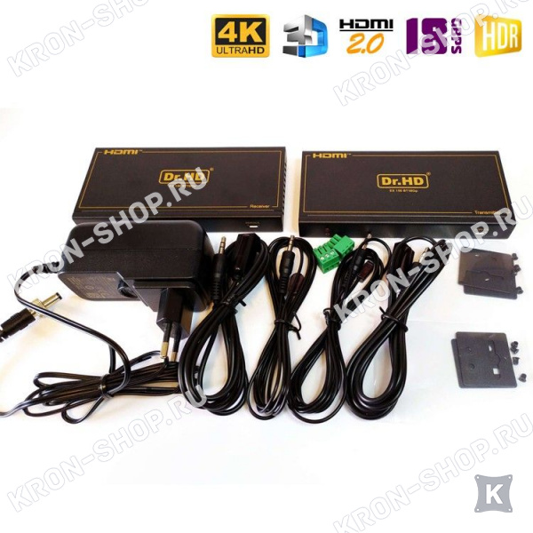 - Приемник (Rx): 1x HDMI, 1x 3.5mm jack (ИК), 1x 3.5mm jack (Аудио)