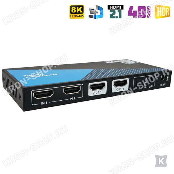 Матричный коммутатор Dr.HD с 2 HDMI входами на 2 HDMI выхода с поддержкой HDMI 2.1.