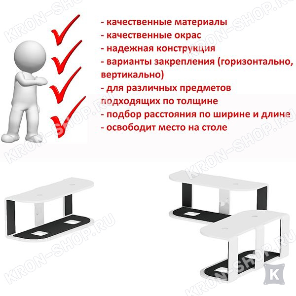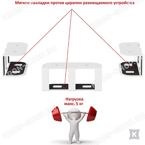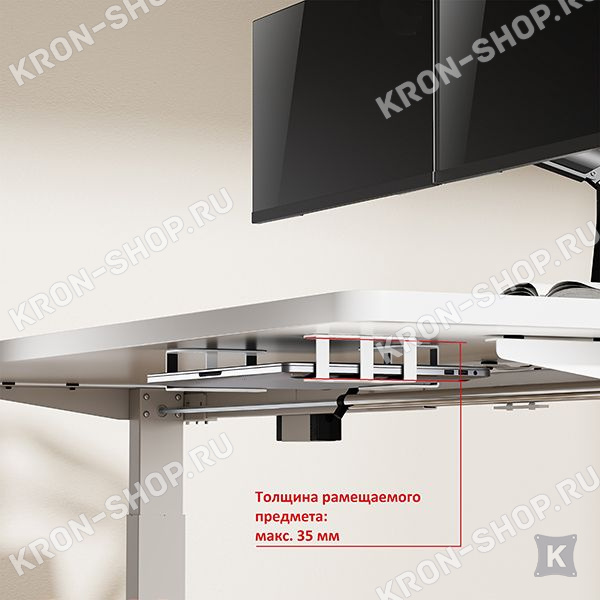 Полка длиной 30 см для установки медиаплеера и других устройств весом до 3 кг над монитором.