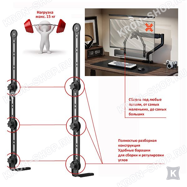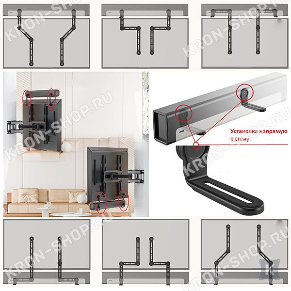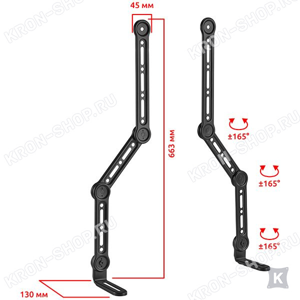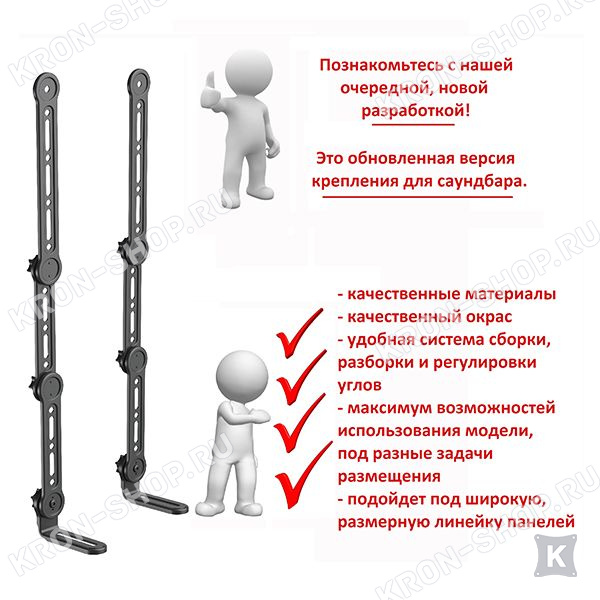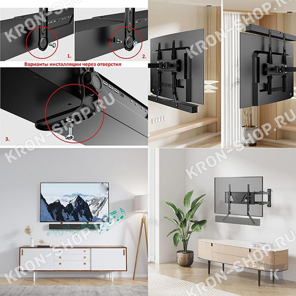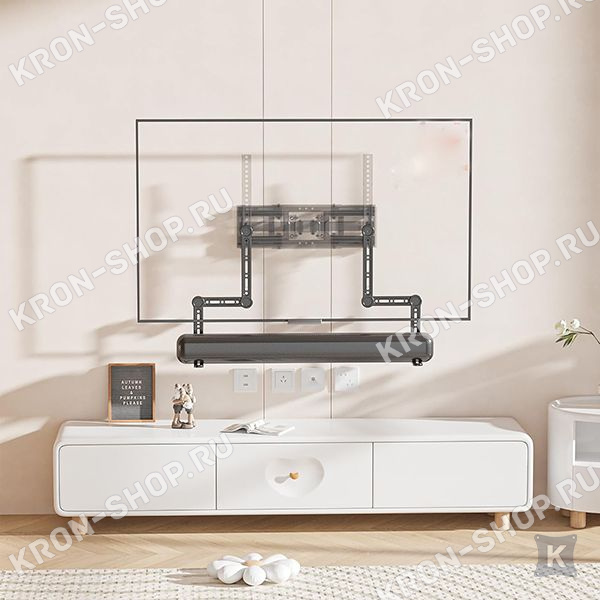 Крепление для саундбара Uniteki SMS1670L крепится к кронштейну телевизора и не требует лишних отверстий в стене. Такой способ монтажа актуален при использовании подвижных телевизионных кронштейнов с функциями наклона, поворота и изменении высоты. При позиционировании телевизора в пространстве саундбар перемещается вместе с телевизором. Таким образом сохраняется направленность звука от саундбара относительно экрана и ощущение присутствия. Подходит для большинства телевизоров со схемой крепежных отверстий VESA от 75х75 до 900х600 мм. В комплект поставки входят детали, необходимые для крепления. Максимальная нагрузка на крепление до 15 кг. Максимальная нагрузка кронштейна телевизора должна быть больше либо равна суммарному весу телевизора и саундбара.