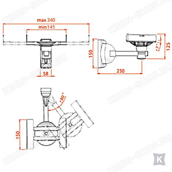 Настенный поворотно-наклонный кронштейн для видео и аудиоаппаратуры весом до 20 кг.