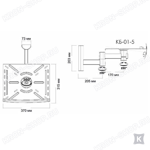 Кронштейн Electriclight КБ-01-5 позволит расположить устройство, как в горизонтальном, так и в вертикальном положении.