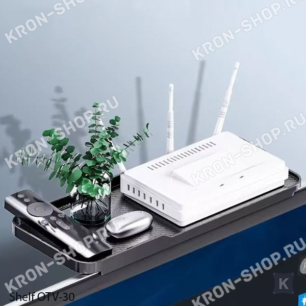 Полка устанавливается на верхнюю часть телевизора или монитора. Полка представляет собой удобную поверхность для размещения аппаратуры, канцелярии и другого. Данная полка подходит для ТВ мониторов и экранов любых моделей и разных диагоналей. У полки несколько достоинств: