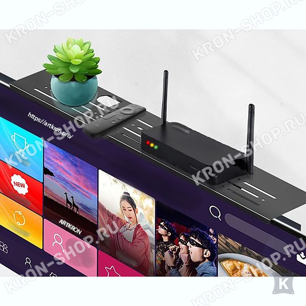 Крепление ARTKRON Shelf OTV-90 для установки медиаплеера, AV-ресиверов, динамиков и других компактных мультимедийных устройств над телевизором или монитором.