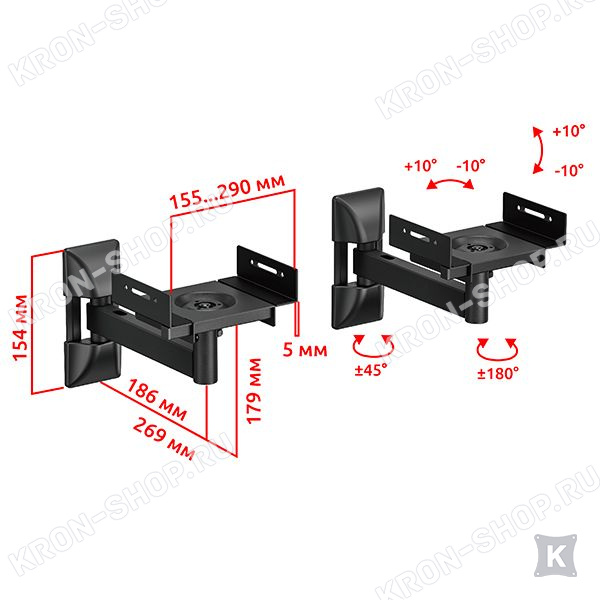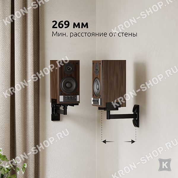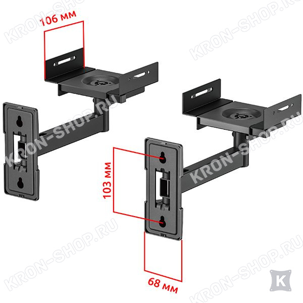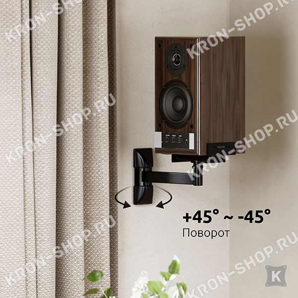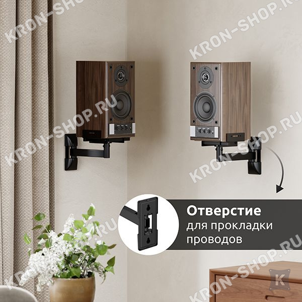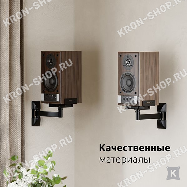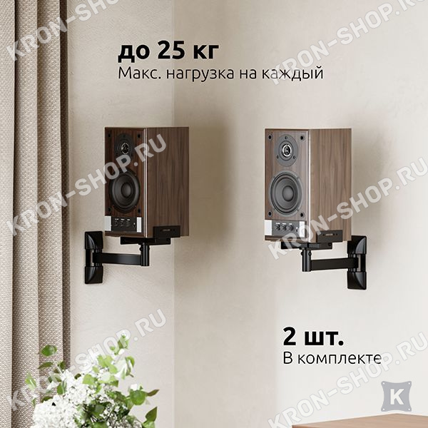 Комплект настенных поворотно-наклонных кронштейнов для аудиоаппаратуры весом до 15 кг.