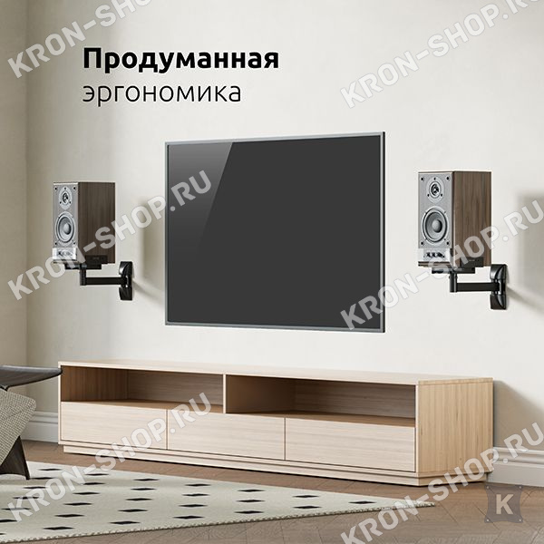 Настенный поворотно-наклонный кронштейн для видео и аудиоаппаратуры весом до 25 кг.