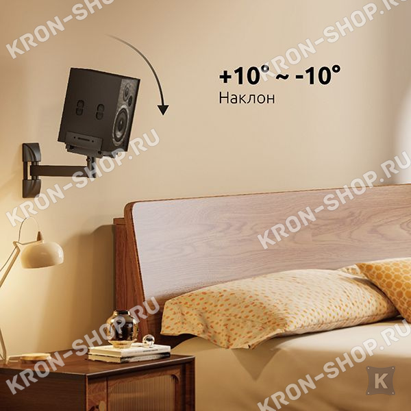 Настенный поворотно-наклонный кронштейн для видео и аудиоаппаратуры весом до 15 кг.