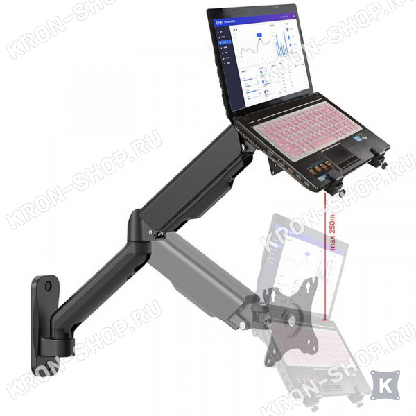 Настенный наклонно-поворотный кронштейн с регулировкой высоты + площадка держатель крепление для ноутбука ARTKRON Shelf-150.