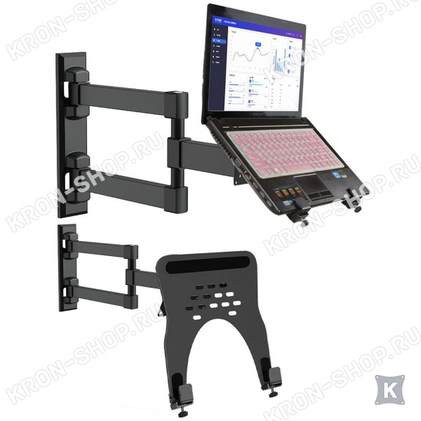 Настенный наклонно-поворотный кронштейн + площадка держатель крепление для ноутбука ARTKRON Shelf-17.