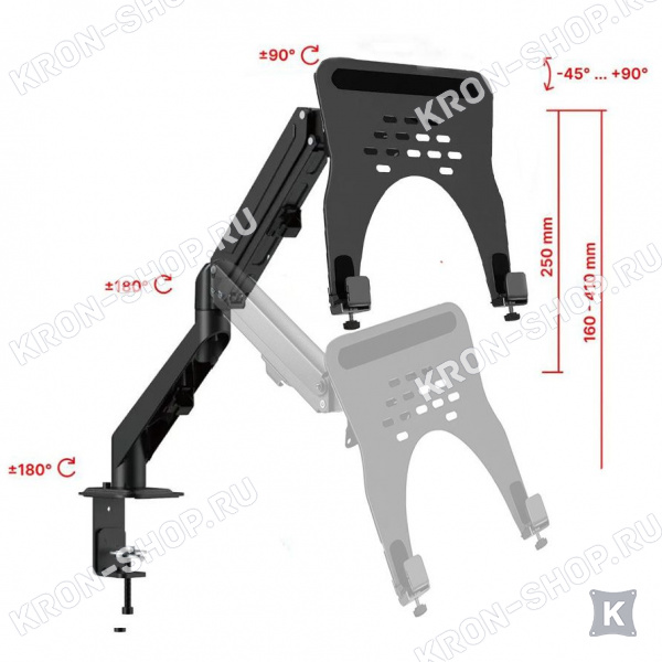 Настольный наклонно-поворотный кронштейн с регулировкой высоты + площадка держатель крепление для ноутбука ARTKRON Shelf-81.
