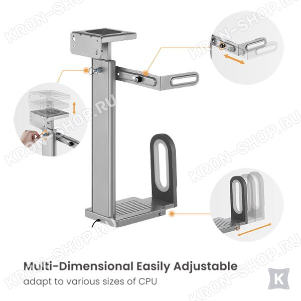 Универсальное крепление Brateck CPB-26R подходит для системных блоков различных размеров. Доступна функция вращения на 360 градусов, регулировка по длине, глубине и высоте. Держатель для системного блока с RGB подсветкой CPB-26R обеспечивает безопасное и экономящее место решение для большинства популярных игровых ПК-корпусов