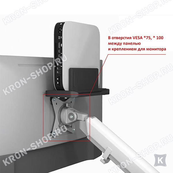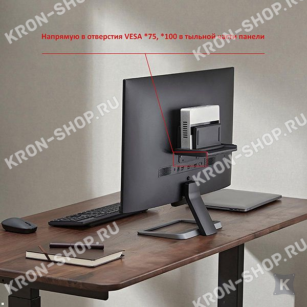 - Способ крепления mini PC: крепления VESA, зажатие между площадками кронштейна;