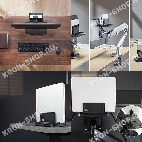 Возможность установки: на стену, на стол, к VESA креплениям монитора, между монитором и кронштейном, к настольному кронштейну.