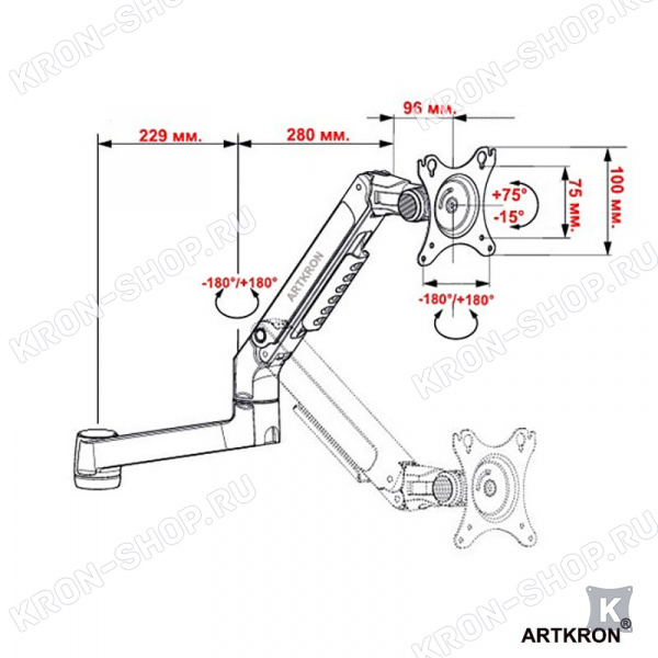 Дополнительное крепление ARTKRON ART-940 предназначен для кронштейнов ARTKRON ART-K, Держатель рассчитан для мониторов со стандартом 75х75, 100х100 мм., весом от 3 до 10 кг. радиусом изгиба монитора от 4000R до 1800R. Крепление ARTKRON ART-940 поможет вам организовать рабочее место за счёт возможности придания монитору множества степеней свободы.