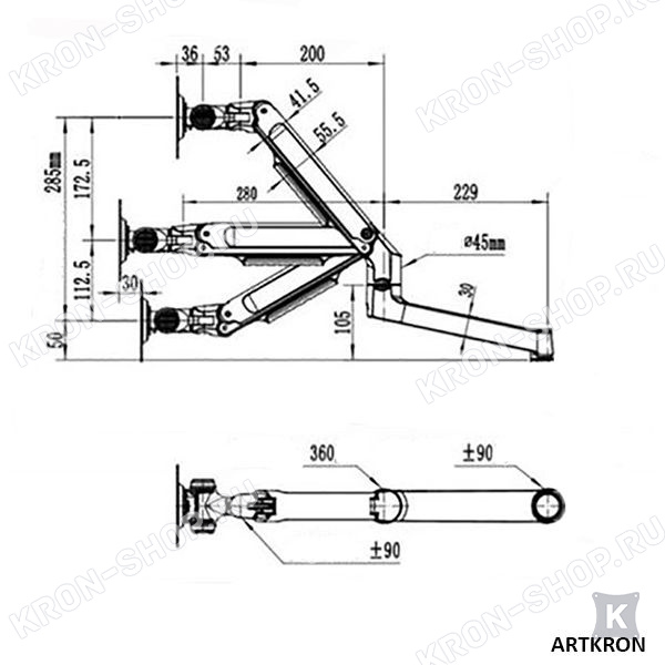 Дополнительное поворотно-наклонный крепление для кронштейнов ARTKRON серии ART.