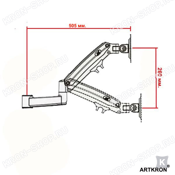 - максимальное горизонтальное перемещение – 505 мм.