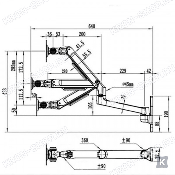 Благодаря газовой пружине легко отрегулировать высоту мониторов, фиксируя его в любом промежуточном положении. Поднимите мониторы на удобную для вас высоту, наклоните и поверните монитор, чтобы убрать с экрана раздражающие блики. Работайте с комфортом, берегите своё здоровье!