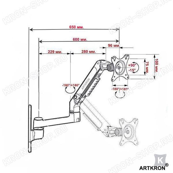 Степени свободы крепления ARTKRON ART-W243 DUO: