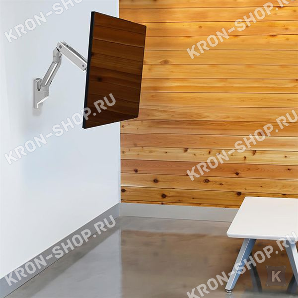 Настенный поворотно-наклонный кронштейн в серебристом цвете c регулировкой по высоте для монитора с диагональю до 49 дюймов включительно.