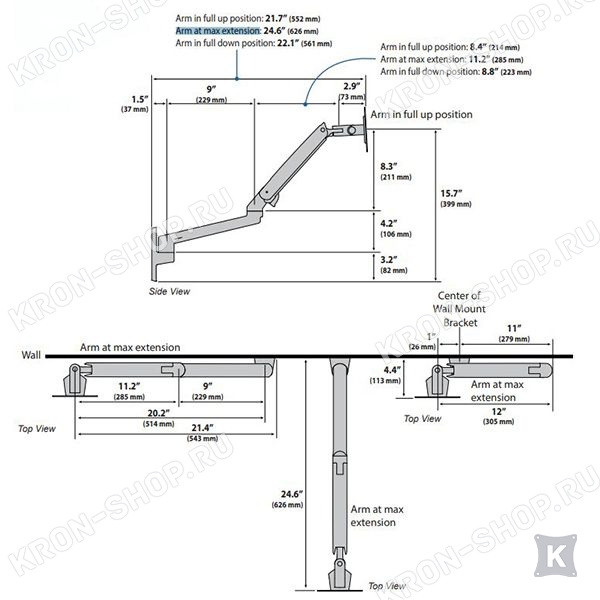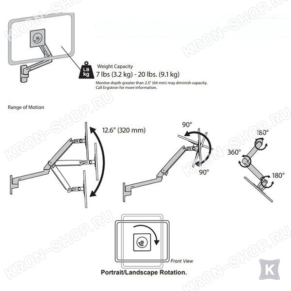 Степени свободы крепления Ergotron MXV Wall Mount LCD Monitor Arm (45-505-224):