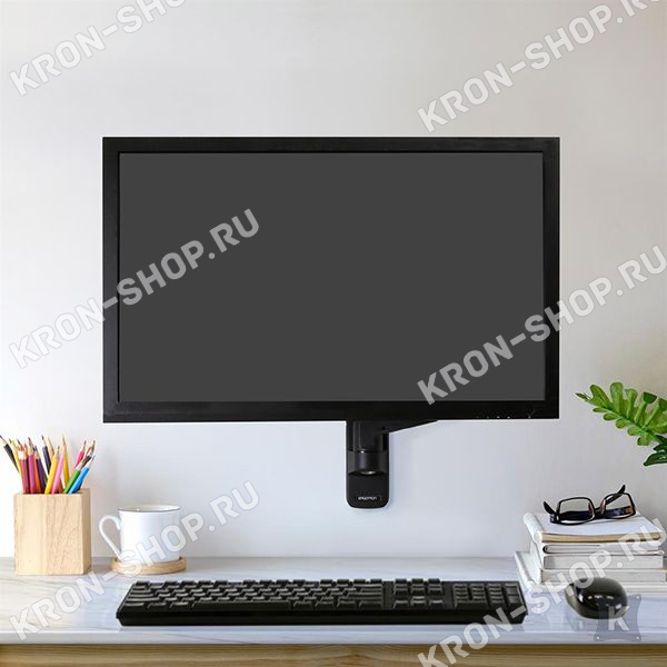 Настенный поворотно-наклонный кронштейн в чёрном цвете c регулировкой по высоте для монитора с диагональю до 34 дюймов включительно.