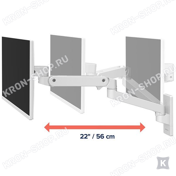 Дополнительный переходник для двух мониторов, который покупается отдельно (Ergotron 97-783), легко крепится на кронштейн Ergotron LX Pro Wall Monitor Arm (45-683-290) и помогает организовать комфортные условия труда.