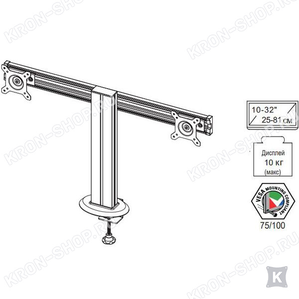 суммарная максимальная нагрузка до 20 кг (по 10 кг на каждый монитор);
