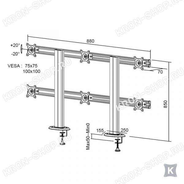 - мониторы наклоняются на +20°/-20° вверх/вниз.