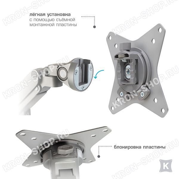 плавное и лёгкое движение кронштейна влево и вправо, вперёд и назад, вверх и вниз, а также фиксация в любом промежуточном положении;