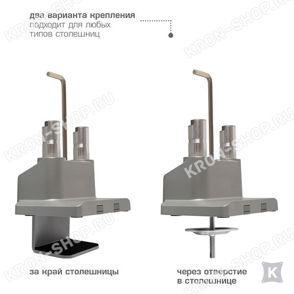 Кронштейн Arm-Media LCD-T36 предназначен для лёгкой установки на столешницу стола дома или в офисе. Один из основных плюсов его в том, что прикрепить к столешнице его можно любым из двух удобных для вас способов: