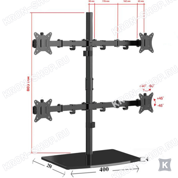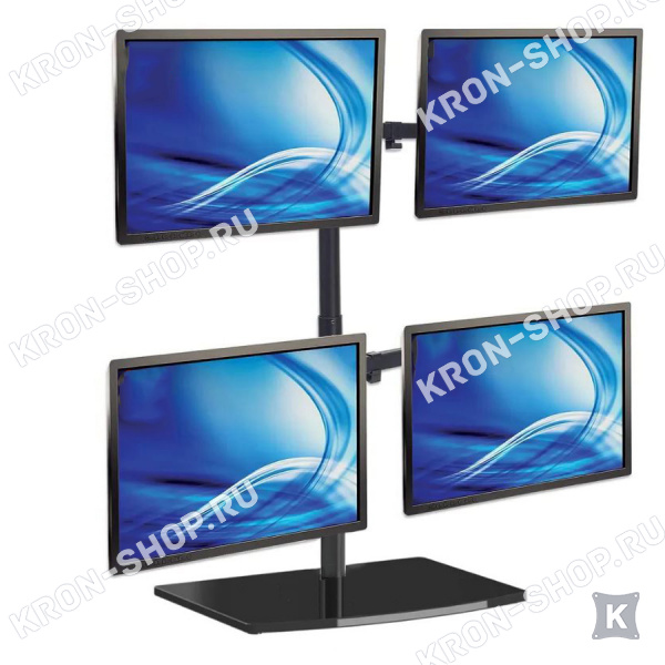 Настольный кронштейн ARTKRON 422M рассчитан на установку на любых устойчивых столах и поверхностях четырёх телевизоров или мониторов диагональю от 10" до 27" одновременно.