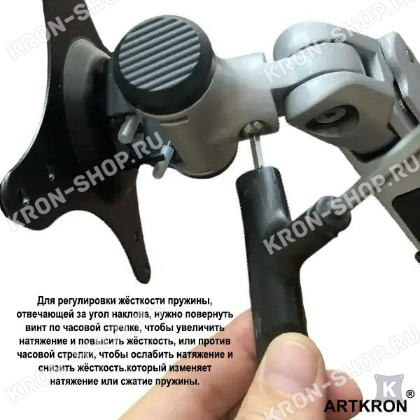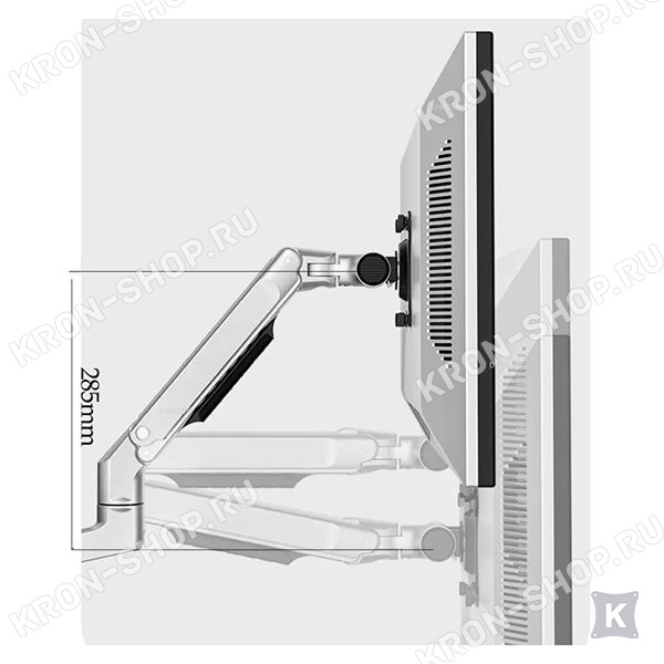 Кронштейн обеспечивает регулировку высоты монитора с помощью встроенной пружины, а также по высоте трубы длиной 280 мм, что позволяет легко настраивать положение монитора для максимального комфорта и эргономики.