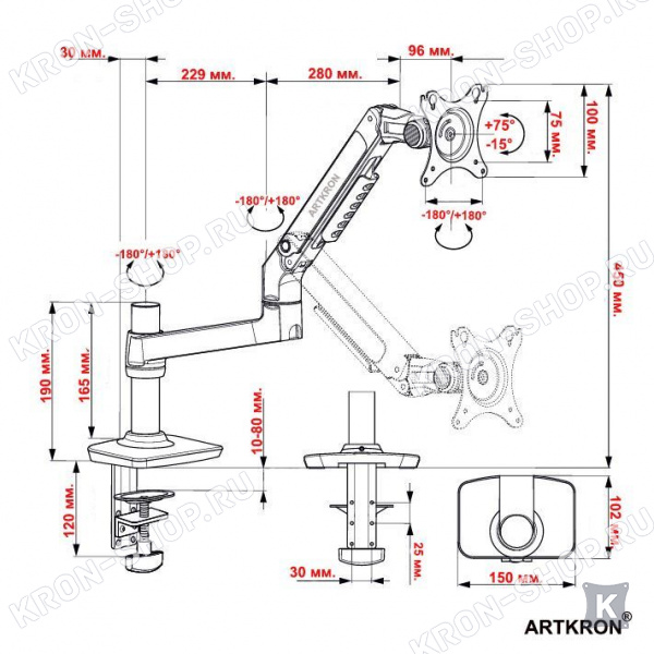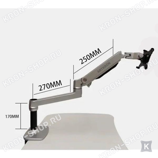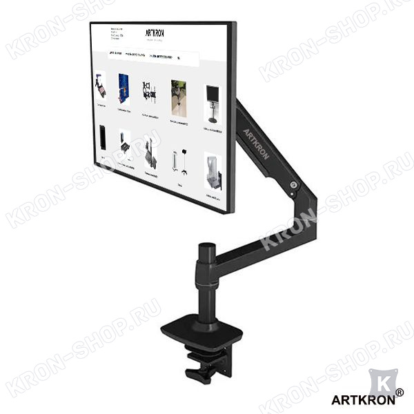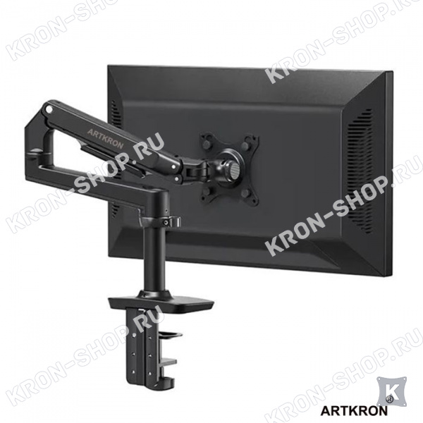 Крепление для монитора ARTKRON ART-K1 чёрного цвета рассчитан для мониторов со стандартом 75х75, 100х100 мм., весом от 2 до 11 кг. радиусом изгиба монитора от 4000R до 1800R. Кронштейн ART-K1 поможет вам организовать рабочее место за счёт возможности придания монитору множества степеней свободы.