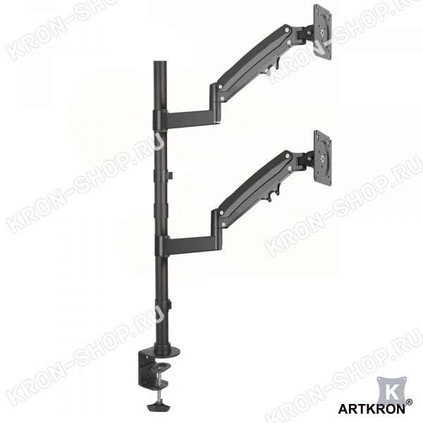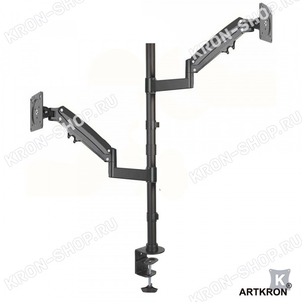 Крепление для двух мониторов ARTKRON STEEL-K16V рассчитан для мониторов со стандартом 75х75, 100х100 мм., весом от 2 до 9 кг и радиусом изгиба монитора от 4000R до 1800R. Кронштейн STEEL-K16V поможет вам организовать рабочее место за счёт возможности придания монитору множества степеней свободы.