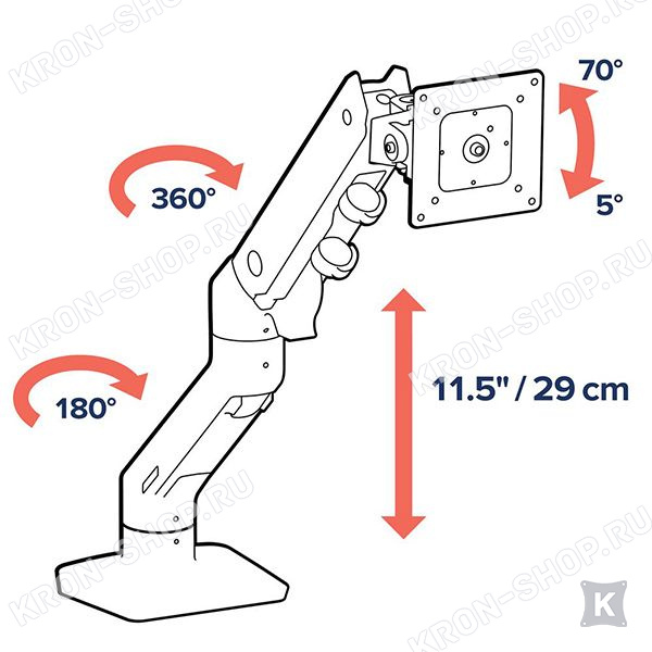 Степени свободы крепления Ergotron HX Desk Mount LCD Arm (45-475-026):