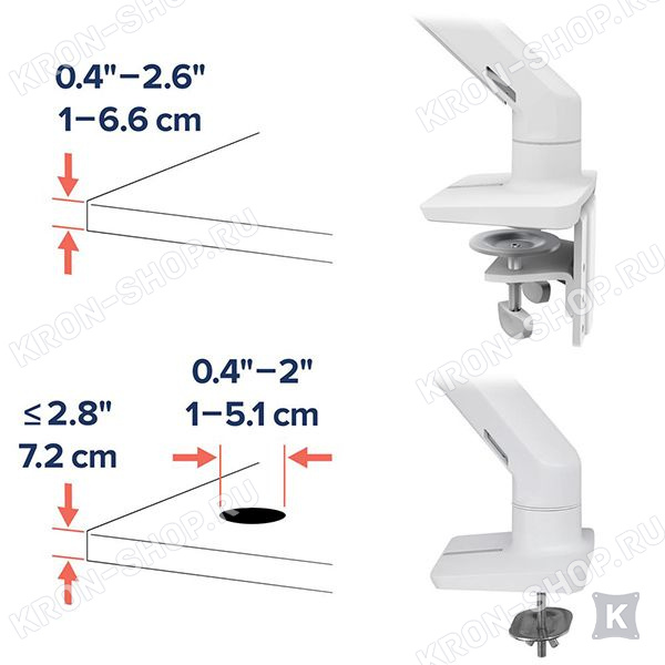 через зажим-винт крепится сквозь стол, диаметром от 8 до 50 мм и толщиной до 70 мм.