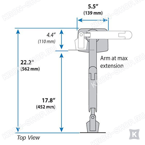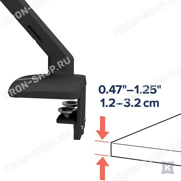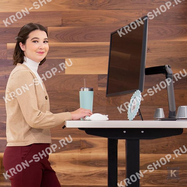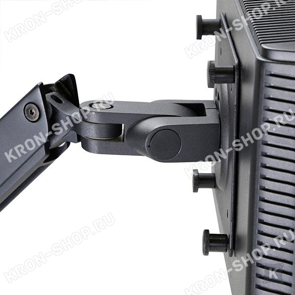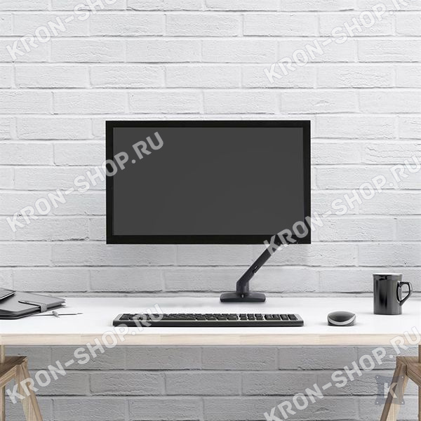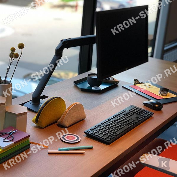 За счёт подъема монитора вверх, а также отвода соединительных кабелей в специальный канал, значительная часть рабочего стола освобождается. Вы можете "сложить" звенья крепления, придвинув его практически вплотную к стене.