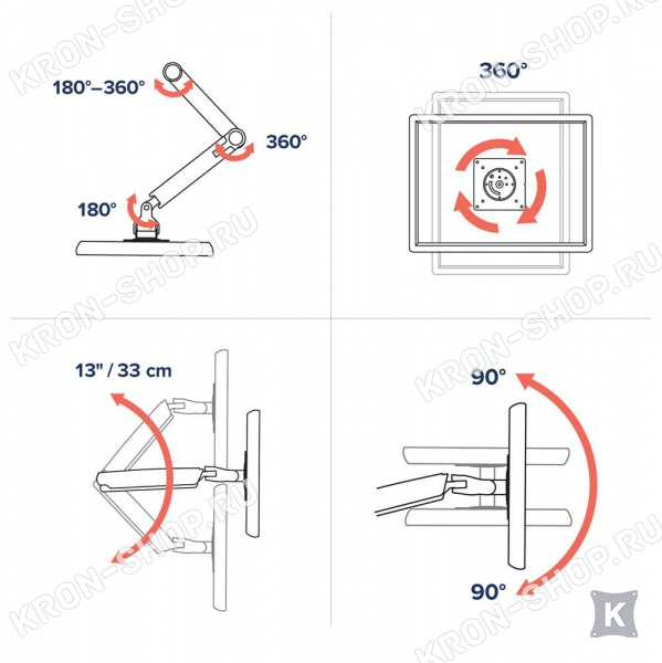 Степени свободы крепления Ergotron HX Desk Mount LCD Arm (45-486-224):