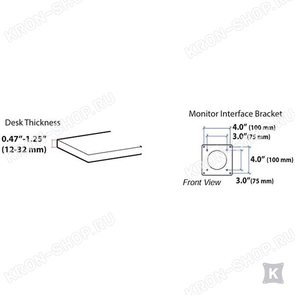 Настольный поворотно-наклонный кронштейн c регулировкой по высоте для монитора или телевизора с диагональю до 32 дюймов включительно.