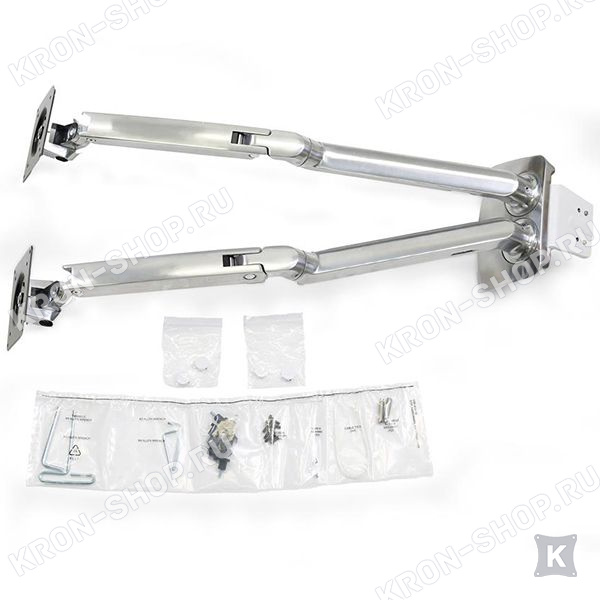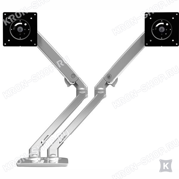 Настольный панорамный поворотно-наклонный кронштейн для двух мониторов с диагональю до 24 дюймов включительно c возможностью регулировки по высоте.