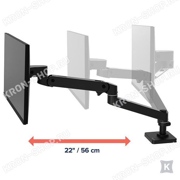 Крепление Ergotron LX Pro Desk Monitor Arm (45-682-292) обладает грузоподъемностью в 10 кг, то есть позволяет вращать, поворачивать, поднимать мониторы и телевизоры размером до 34", а также компьютерные моноблоки.