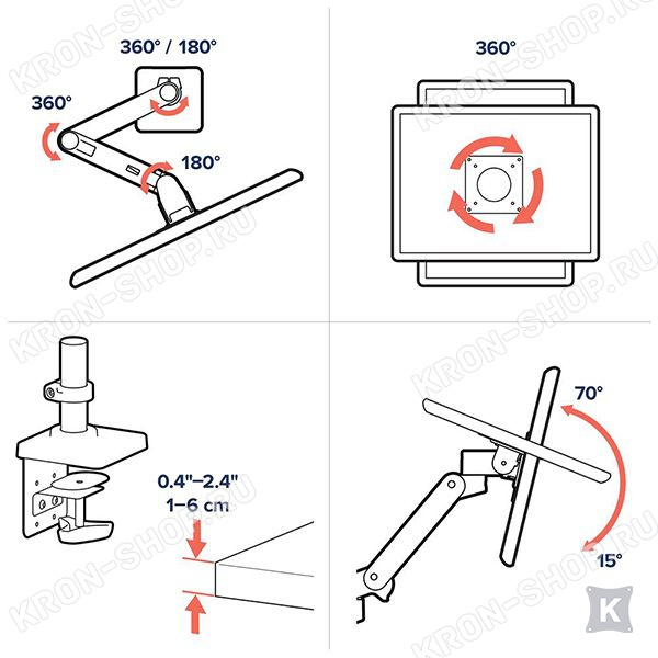Степени свободы крепления Ergotron LX Pro Desk Monitor Arm (45-682-292):
